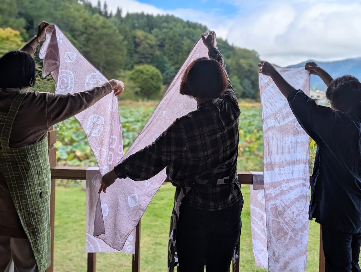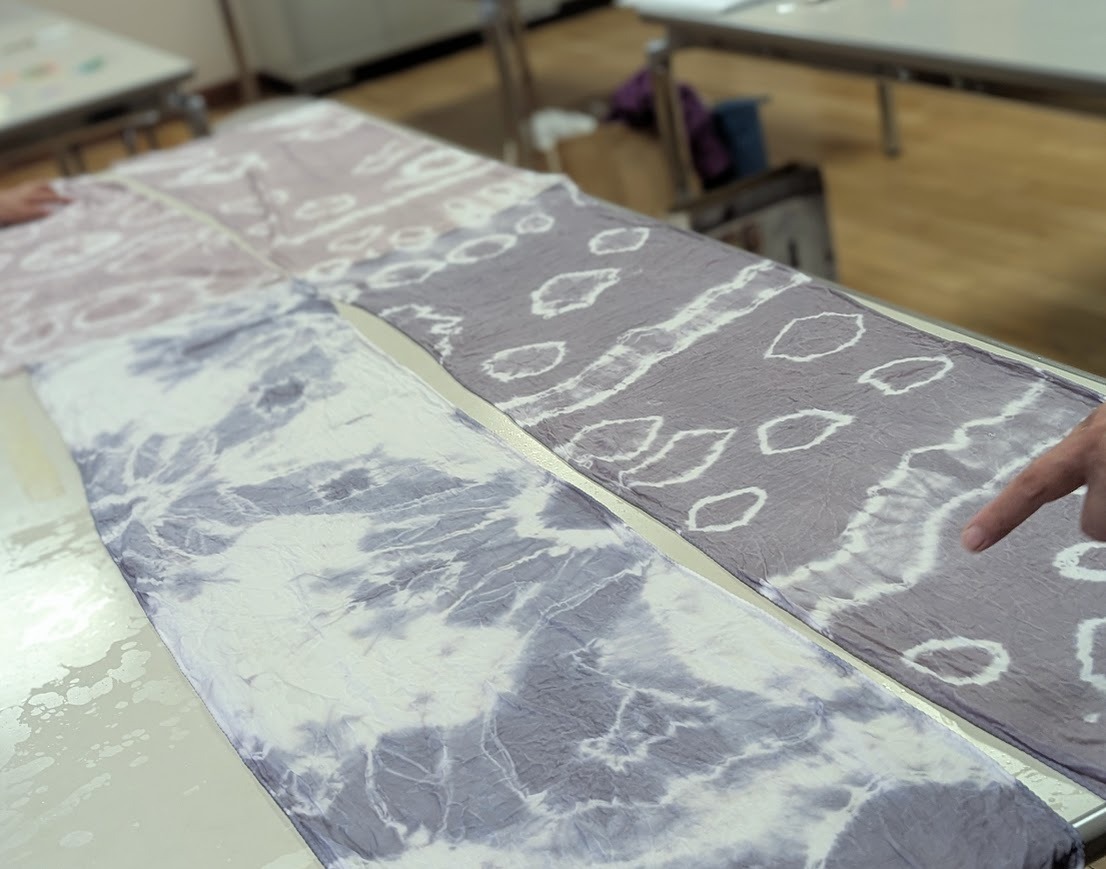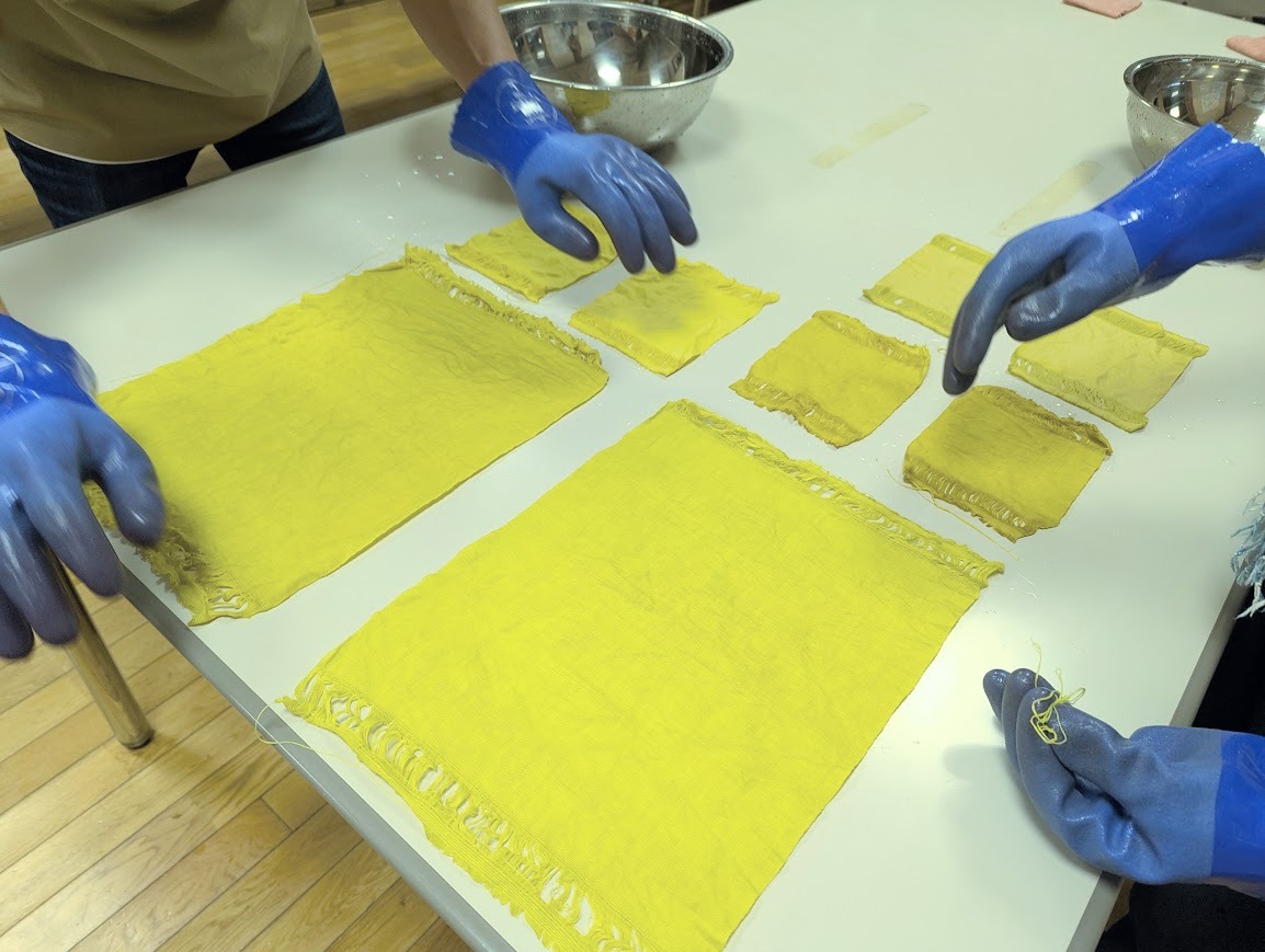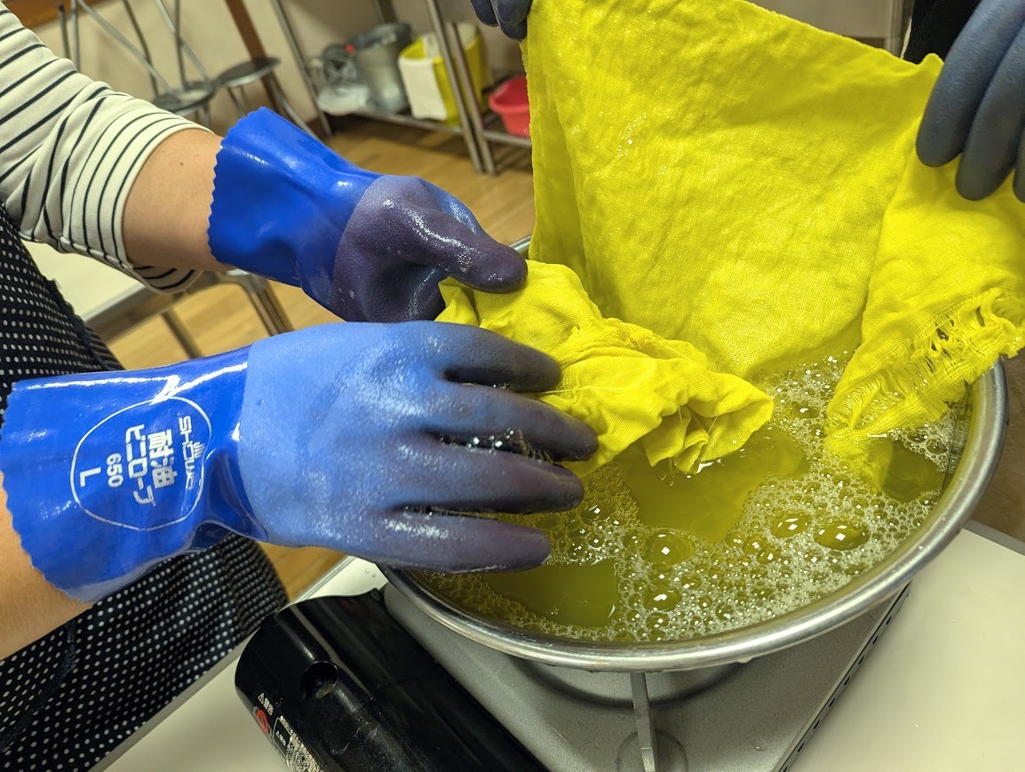 基礎講座では、前回のシルクを染める体験から進み、今回は綿や麻も染められるように構成しました。