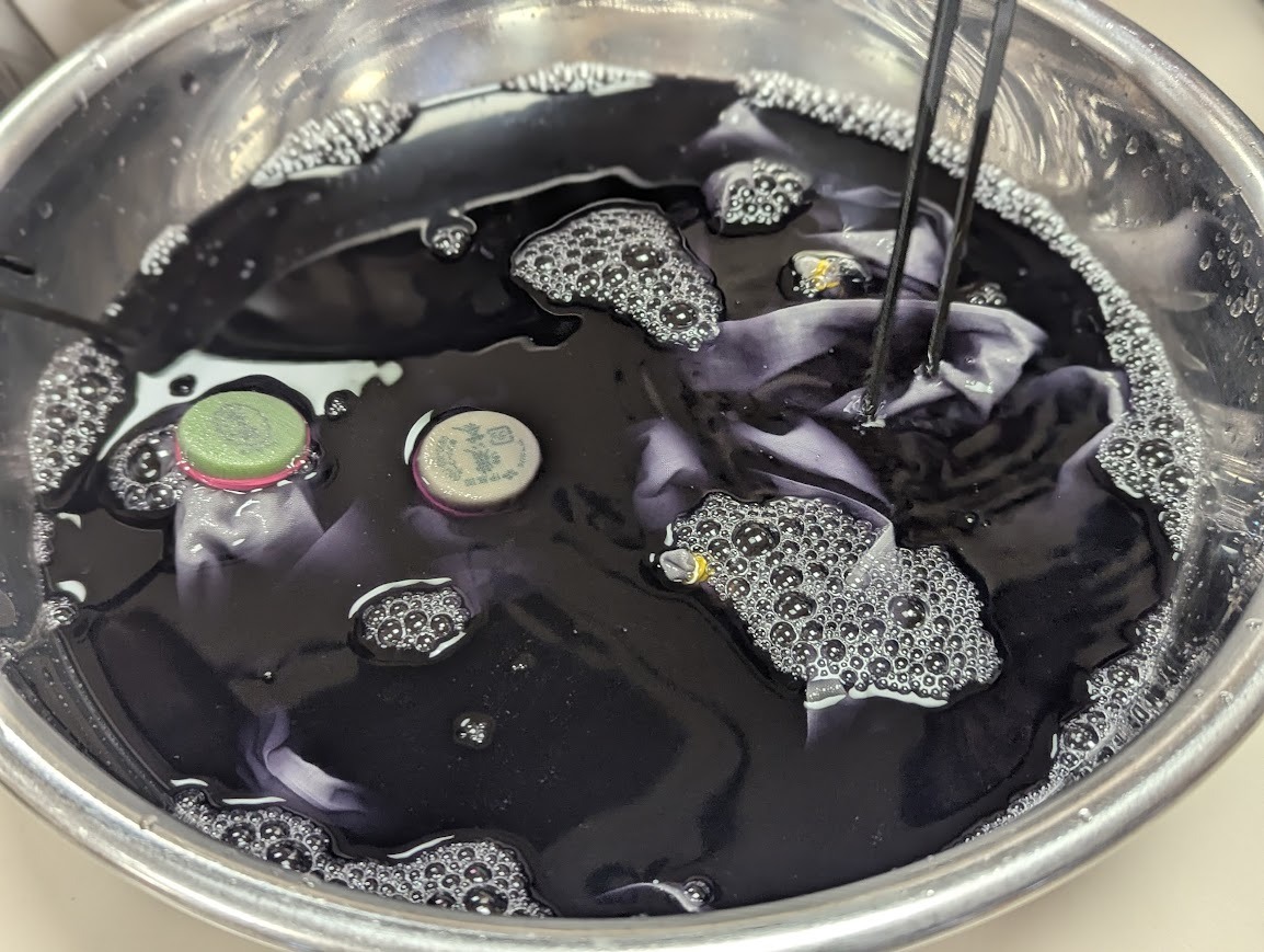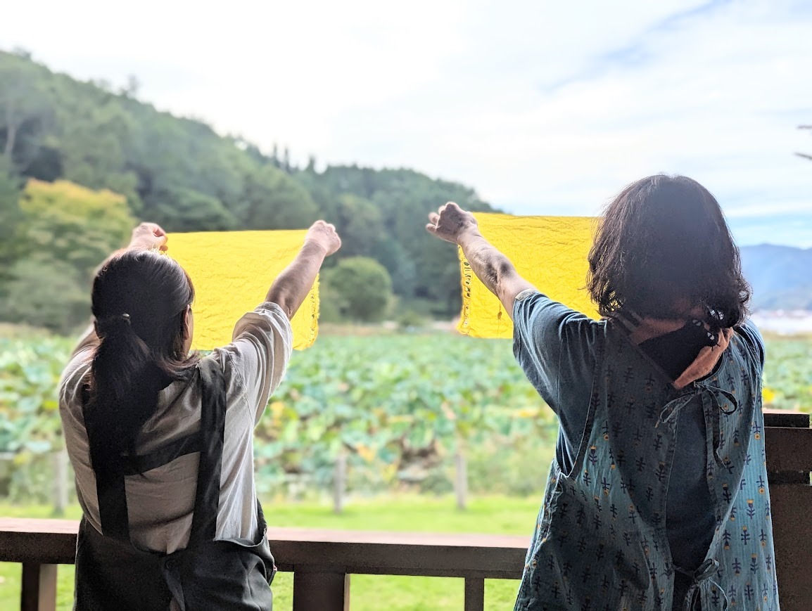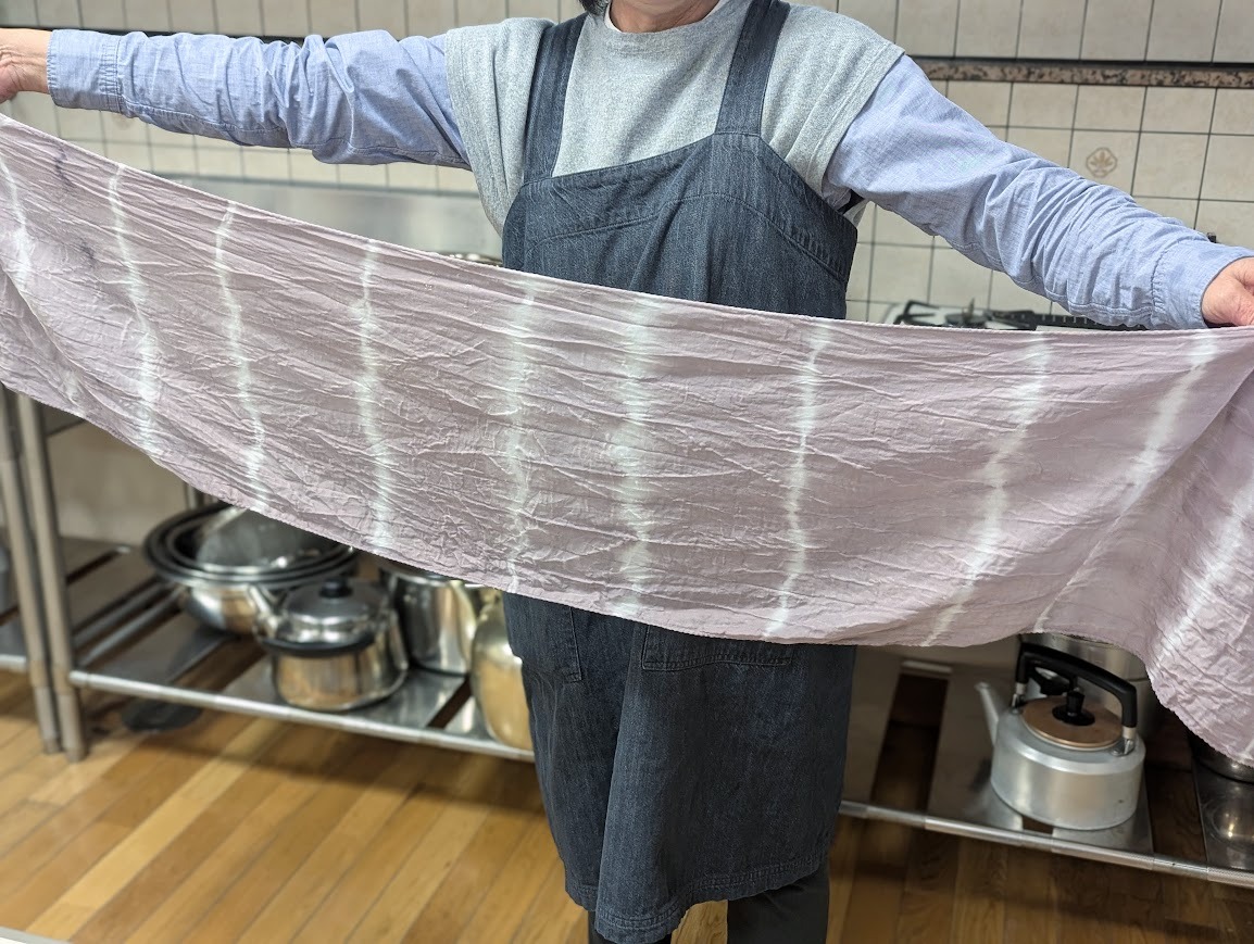 今回は鉄の力を使って、色を定着させていったこともあり、これまでの草木染めとは違った色味が染まりました。