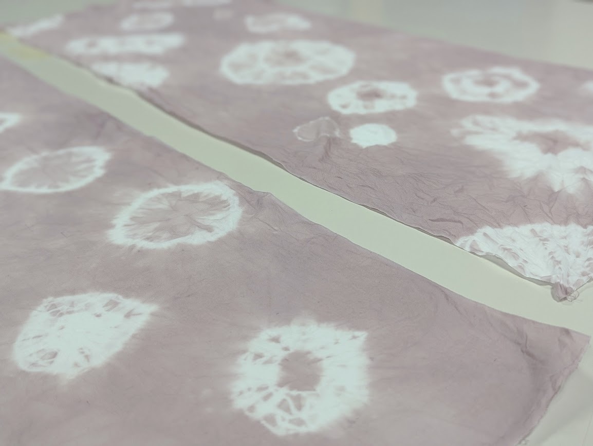 草木染めでは、布の素材や織りの具合によって、微細に染まり方が変わってきます。