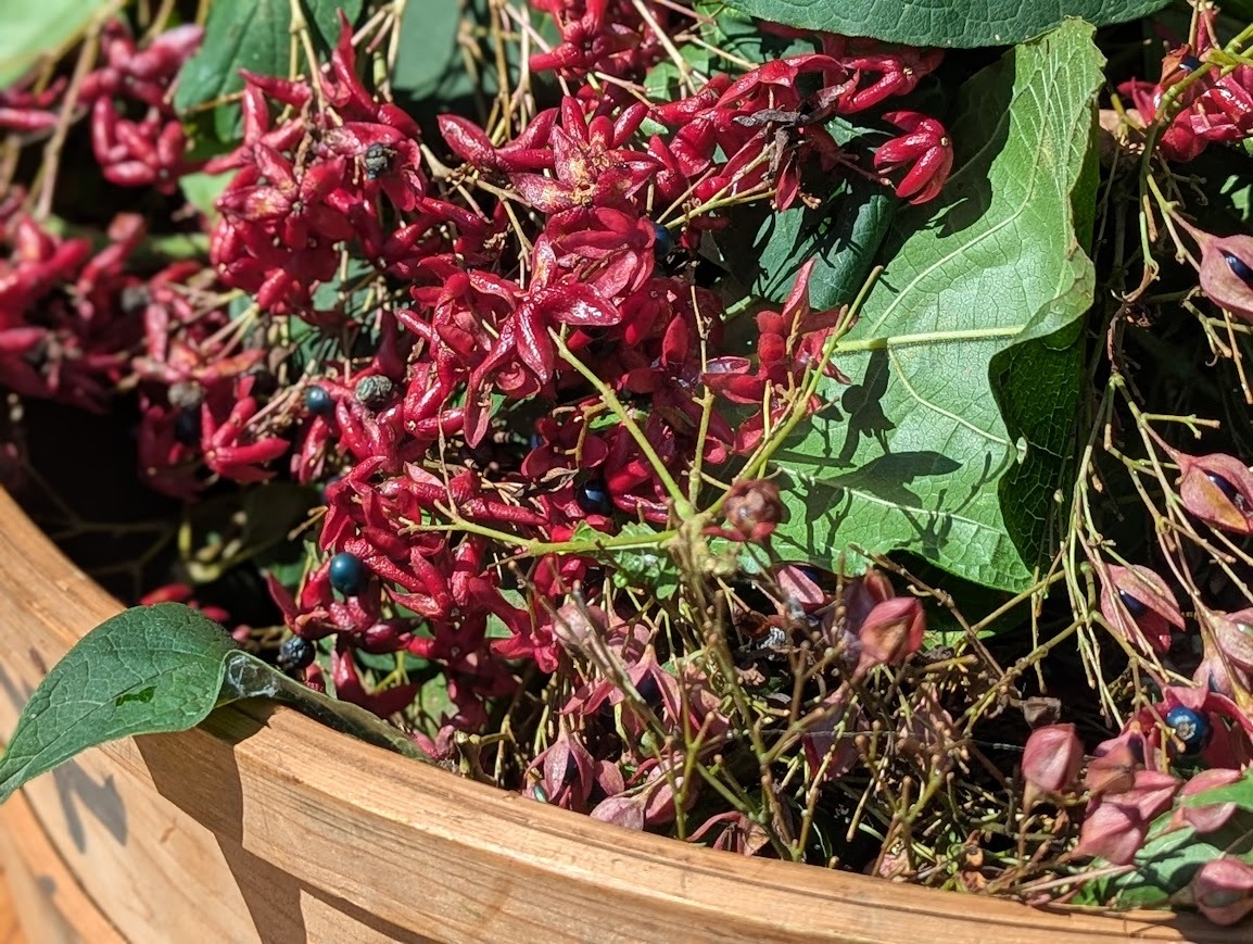 背が届かないところは脚立が必要だったりして、クサギの収穫はなかなか大変なんだなと知りました。