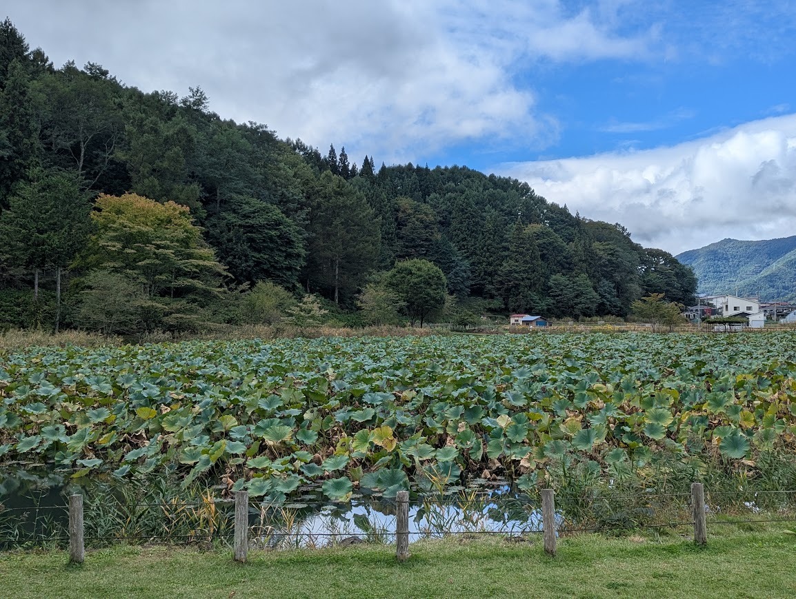 明見湖では、蓮の葉も枯れ始め、蓮の実も茶色くなってきています。