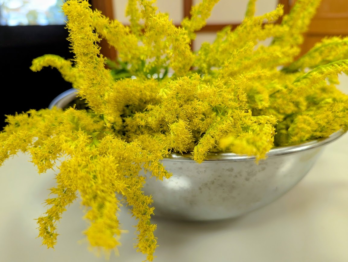 基礎講座では、秋のお花として、セイタカアワダチソウを染めました。