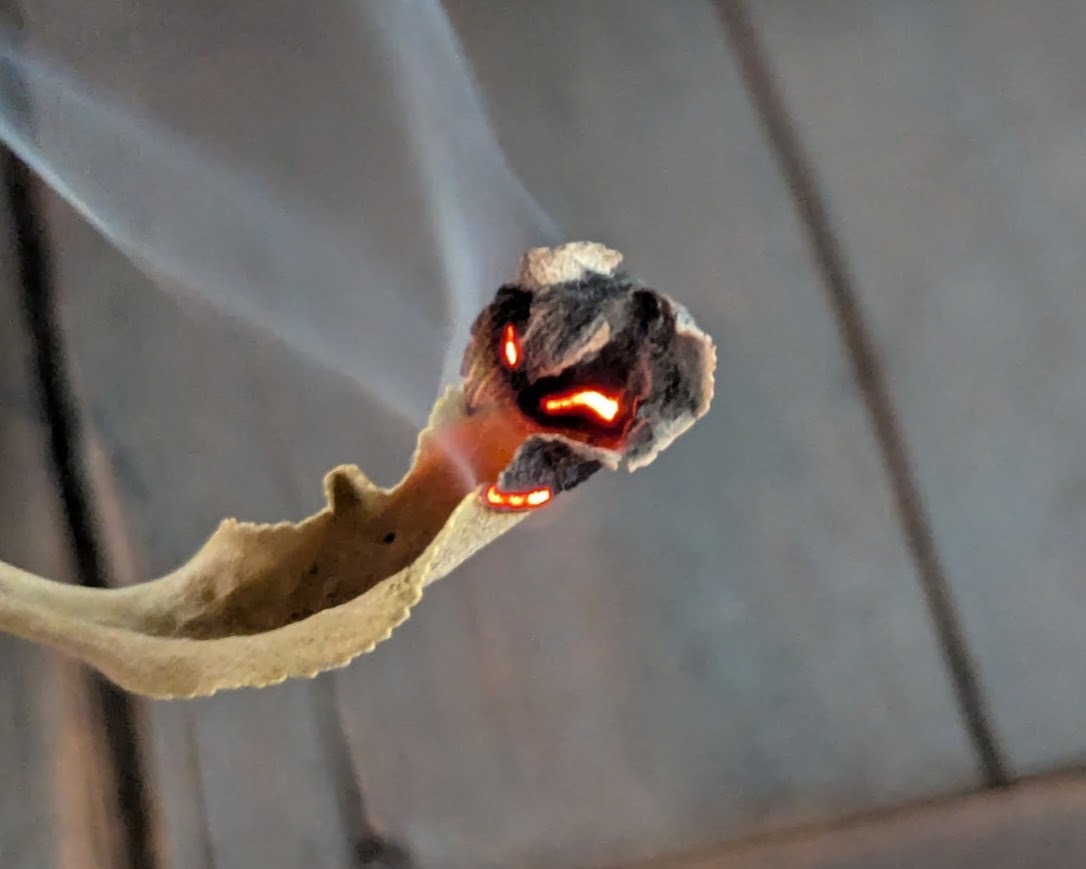 以前、自分でホワイトセージを育てていて、少しずつ収穫しては乾燥してためていたのですが、なんとなく煙が得意ではないと思って、使わずにしまいこんでいました。