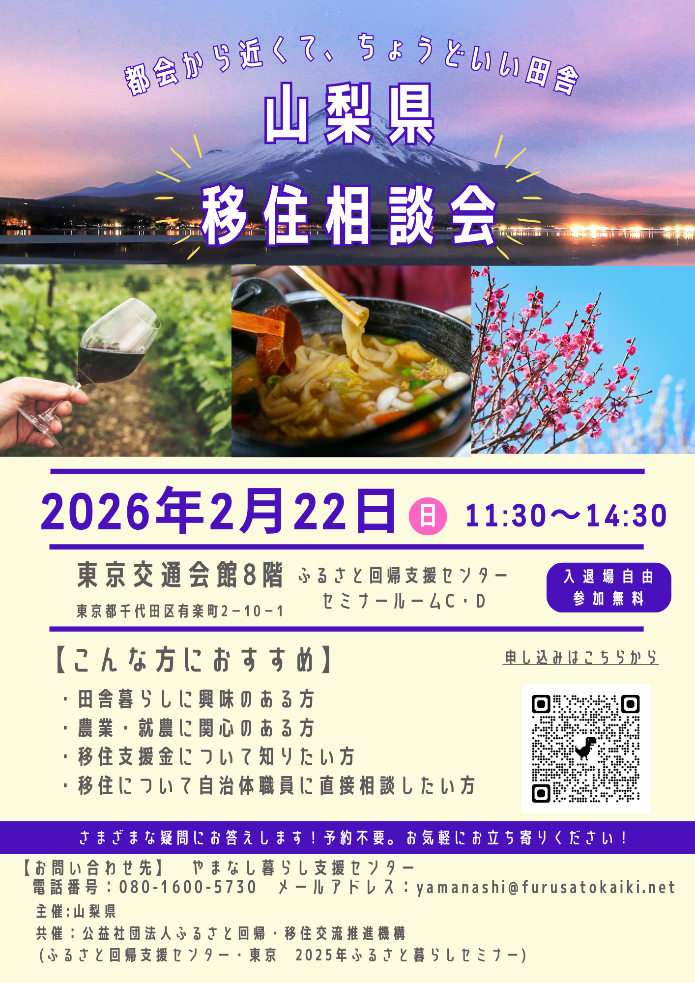 年明け最初の投稿は、東京有楽町にある東京交通会館8Fにて2026年2月22日(日)に行われる『山梨県移住相談会』についてのご案内です!