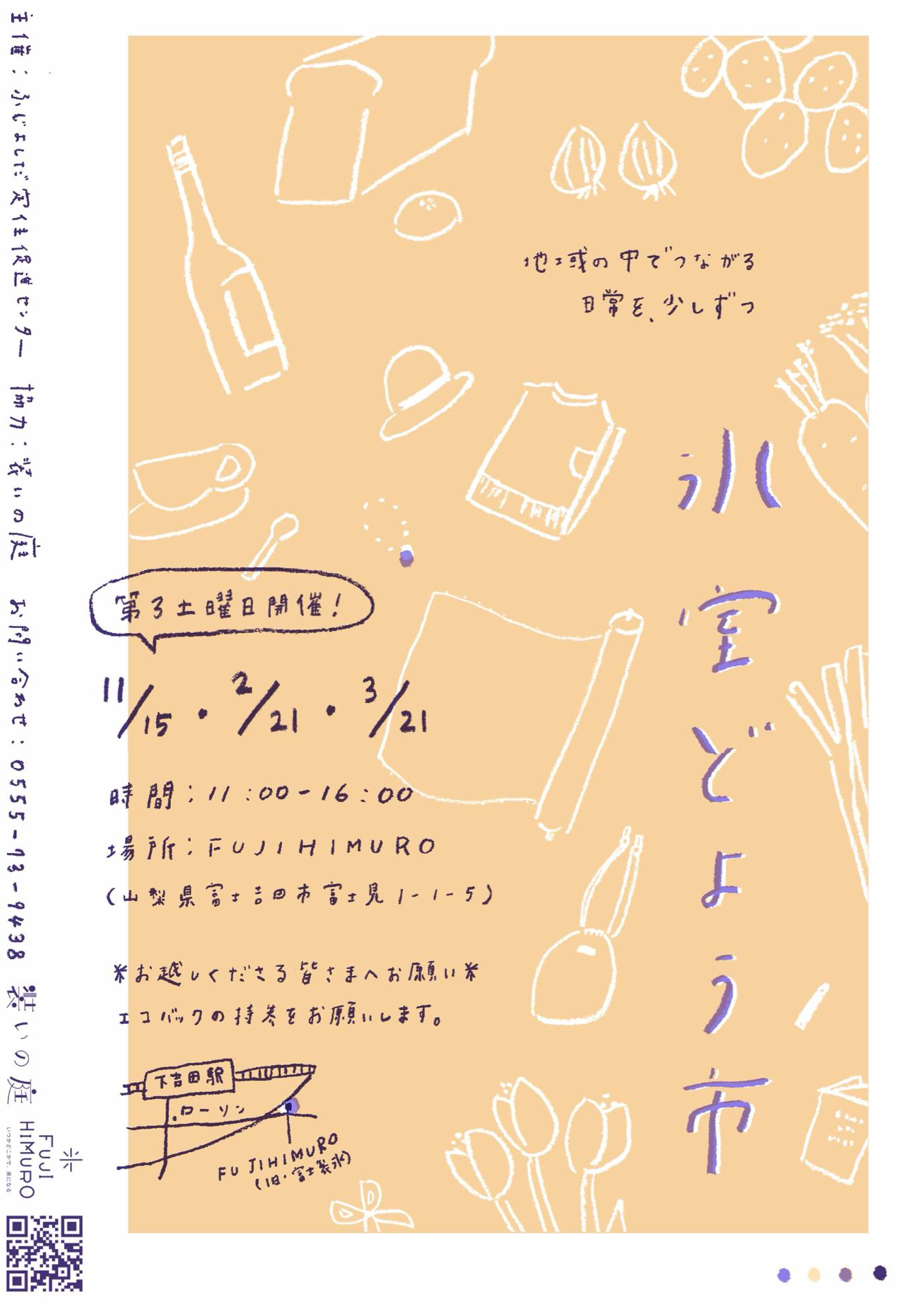 2月の氷室どよう市は、食べものから本、古着や雑貨まで、ゆっくり見て回りたくなるお店が集まります。