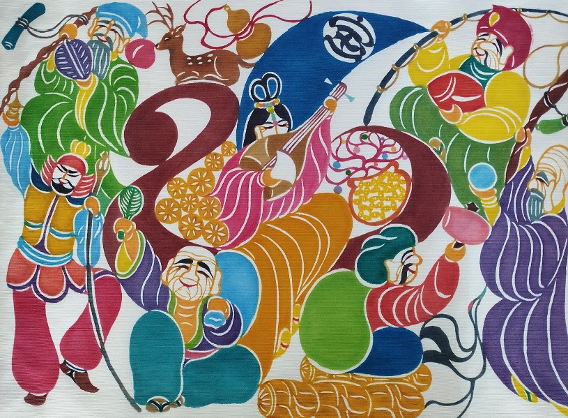 型染の中でも 画面に絵画性やストーリー性をもたせたものを特に ”型絵染” といいます。