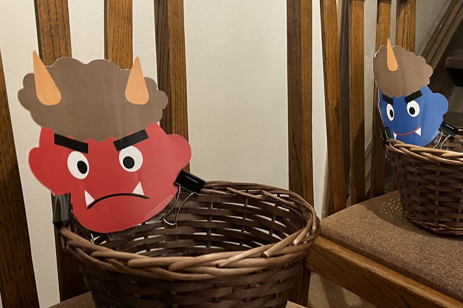 そしてお食事の最後には、子どもたちが鬼さんに向かって豆まきをして、みんなで炒り大豆を食べました👹