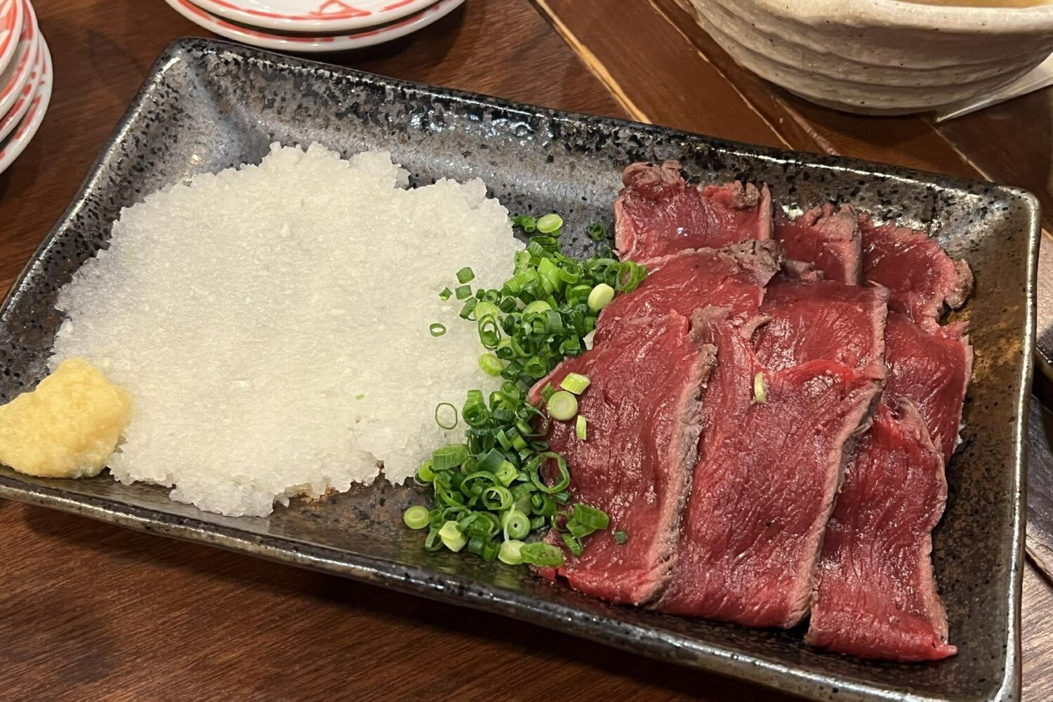 馬肉のたたき、馬刺し、馬肉の炙り、馬もつ煮など馬肉三昧!