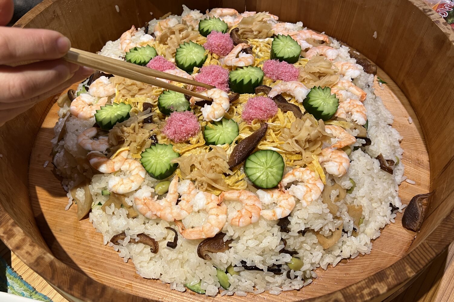 ちらし寿司に使われる具材には、長寿や子孫繫栄など縁起の良い意味が込められている、海老・レンコン・豆などが使われることが多いそうです。